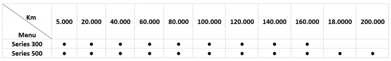 – Xe Hino Series 300: được thực hiện gói bảo dưỡng tối ưu (*) 9 lần, kéo dài tới 160.000 km.